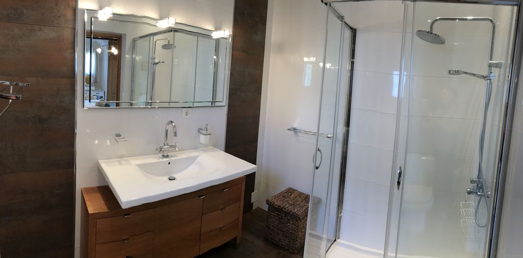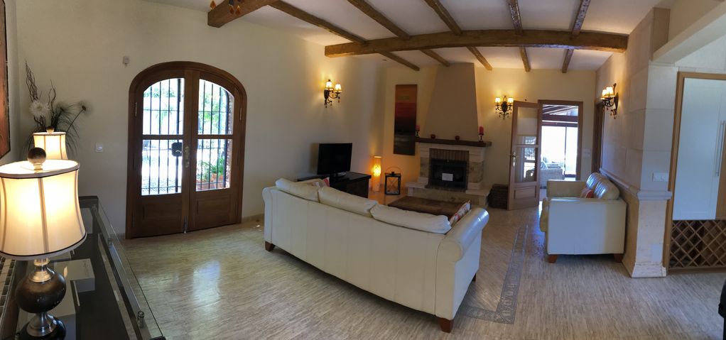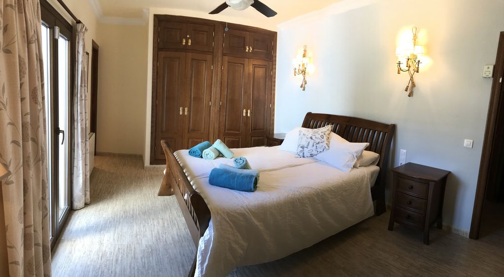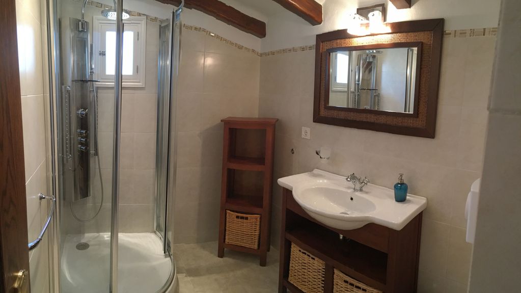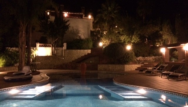 The pool and garden area, complete with sun loungers and parasols offer breath taking views towards both mountains and sea. This is the perfect place to spend the entire day enjoying the sun and taking a dip in the large infinity pool, approx 15x8m wide, the depth is 50cm is shallow smaller pool and 1.65m at deepest part in the larger pool.
